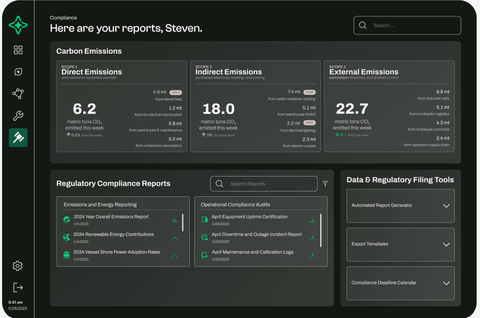 We made it easy to monitor emissions and regulations, helping ports stay compliant without the paperwork overload.