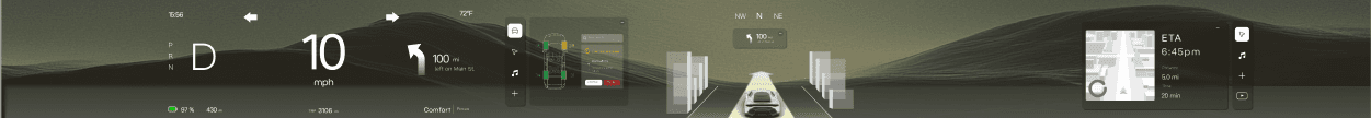 To design an intuitive, adaptive, and emotionally intelligent dashboard UI for fully autonomous vehicles shifting from driver-focused control to a passenger-first experience centered on engagement, safety, and personalization
