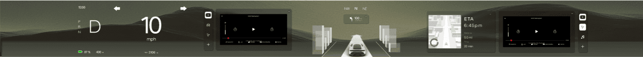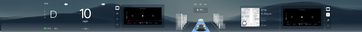 Cruise Mode lets users sit back and enjoy extended periods of entertainment during long trips. With easy access to movies, music, and other media, this mode prioritizes comfort and relaxation while keeping users subtly informed about the vehicle’s status and progress.